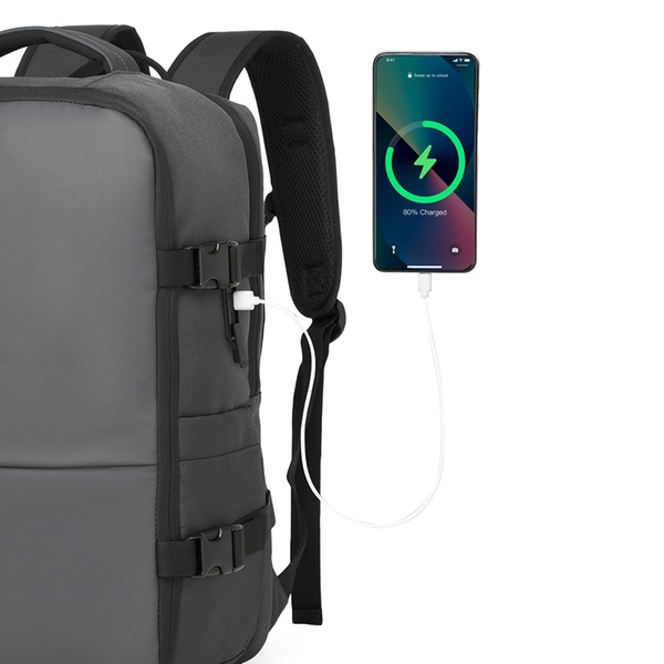 Deze handbagage rugzak met laptopvak en een externe usb-poort biedt optimaal draagcomfort en maakt het opladen van apparaten onderweg eenvoudig