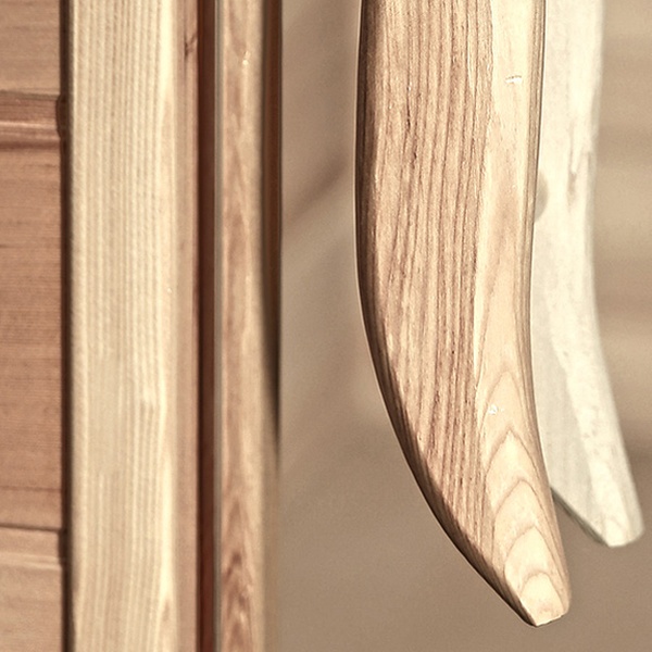 - Wandconstructie van de zijwanden in sandwichconstructie: massief houten panelen binnen en buiten met isolerend holle kamerprincipe