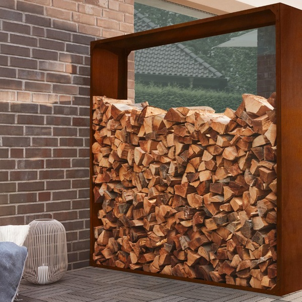 Deze houtopslagfaciliteit is niet alleen handig om hout in op te slaan maar kan ook dienen als modern privacy scherm in elke buitenruimte