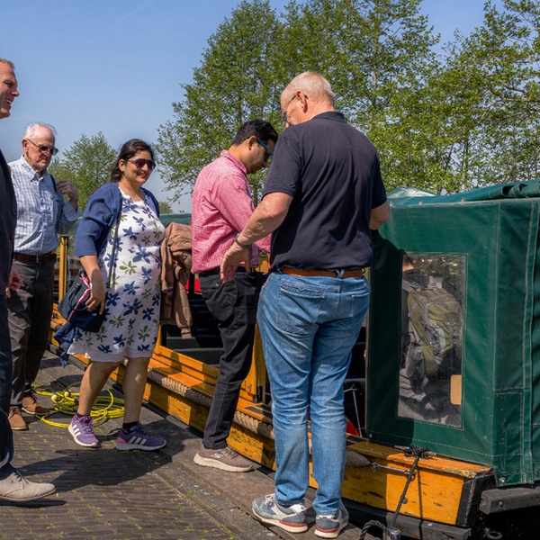 - Vertrek en aankomstVertrek vanuit Amsterdam om 10.00 uur, aankomst in Giethoorn om 12.00 uur. Vertrek uit Giethoorn om 16.00 uur, terug in Amsterdam om 18.00 uur.