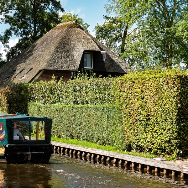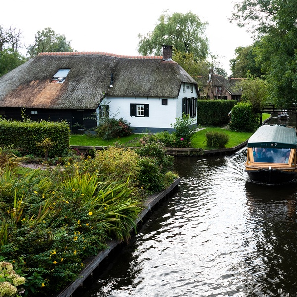 Ontsnap aan de drukte van Amsterdam en laat je betoveren door Giethoorn: geniet van een ontspannende dagtocht per luxe touringcar, een schilderachtige boottocht door de idyllische grachten, en ontdek verborgen plekjes met een digitale wandeltour in dit sprookjesachtige dorp.