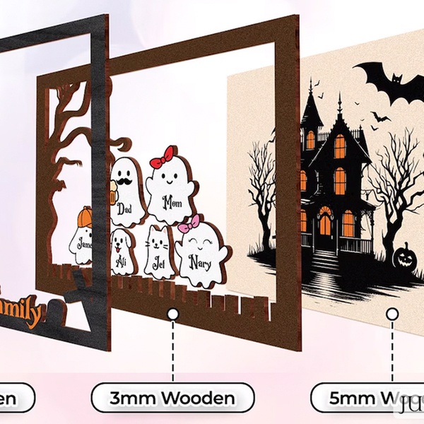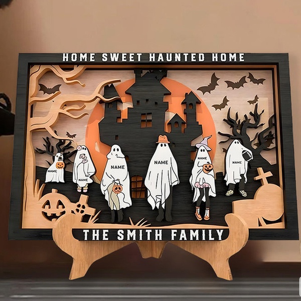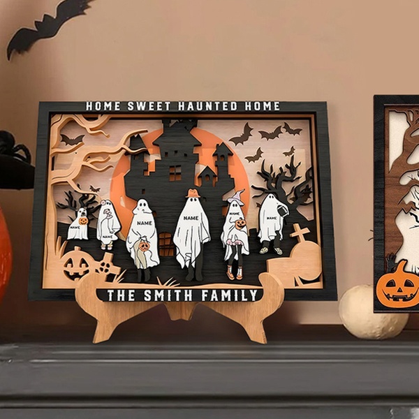 Deze decoratie is meer dan zomaar een ornament, het is een persoonlijk aandenken dat je elk jaar opnieuw kan gebruiken. Met de mogelijkheid om elk spookje te personaliseren met een familienaam, voelt het extra speciaal en uniek. Het hoogwaardige hout en de fijne details geven een gevoel van kwaliteit en vakmanschap. Zet het in de woonkamer, op de mantel of op een tafel en het wordt het middelpunt van je Halloween. De charmante cartoonstijl zorgt ervoor dat het zowel kinderen als volwassenen aanspreekt. Met deze spookjes voeg je een speels en hartverwarmend element toe aan je Halloweenviering, terwijl het een blijvende herinnering aan je familie creëert.