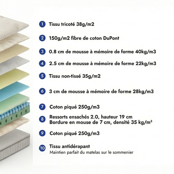 - Optimale ondersteuning en bewegingsisolatie: de combinatie van schuim, latex en pocketveren zorgt voor een goede lichaamsondersteuning en een uitstekende onafhankelijkheid van beweging, ideaal voor stellen.