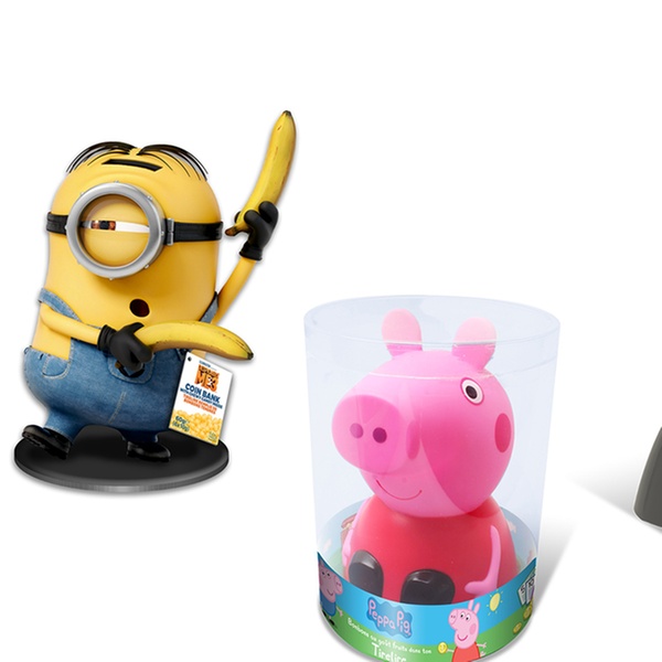Deze spaarpotten met populaire kinderkarakters zijn gevuld met snoepjes en kunnen worden gebruikt om kinderen te leren sparen.