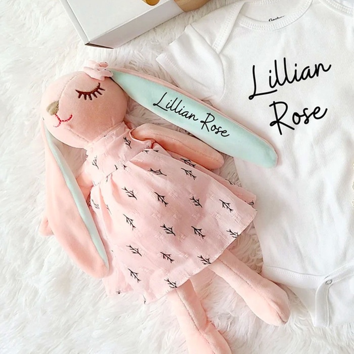 Binnenkort een geboorte, babyshower of een kinderverjaardag? Personaliseer dit knuffelkonijn met naam en/of datum zodat je een heel uniek cadeau heb om te geven