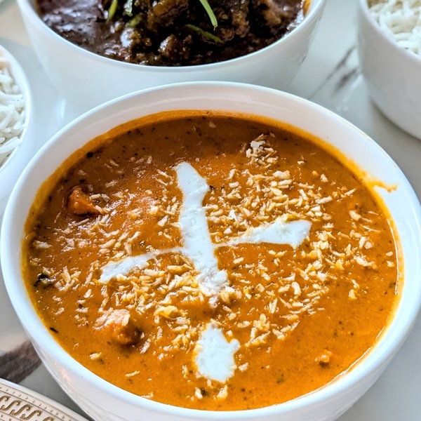 - Hoofdgerecht: ga voor een klassieker zoals de Butter Chicken, een Lams Curry of een vegetarische Paneer Tikka, geserveerd met geurige basmatirijst of versgebakken Naan.