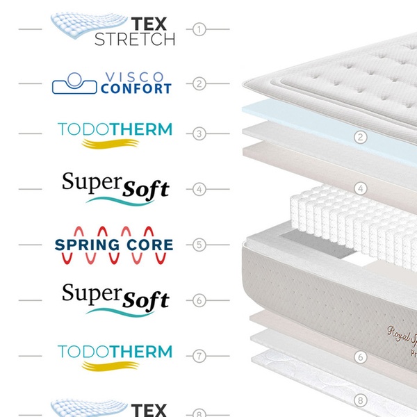 Royal springveren matras van 30 cm dik, met visco-elastisch + supersoft schuim, inclusief verzending