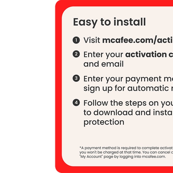 * **Betaling:** Een betaalmethode is nodig voor activering, maar de verlengingskosten worden pas 30 dagen voor het aflopen van de huidige termijn in rekening gebracht, en daarna jaarlijks. * **Herinnering:** Je ontvangt 30 dagen voordat de betaling plaatsvindt een herinnering. * **Opzeggen:** Je kunt je abonnement of de automatische verlenging op elk moment annuleren via de pagina 'Mijn Account' op mcafee.com.