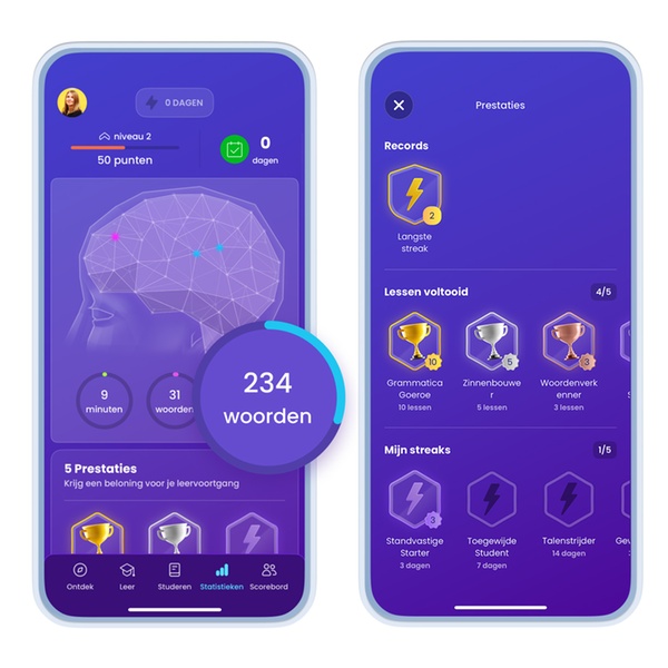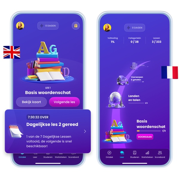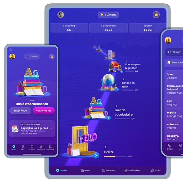 - Meer dan 2500 dagelijkse lessen om je kennis te versterken
