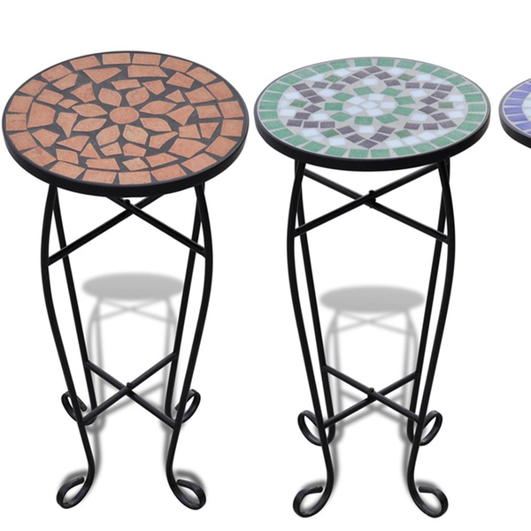 Dit mozaïek bijzettafeltje is verkrijgbaar in verschillende kleuren.