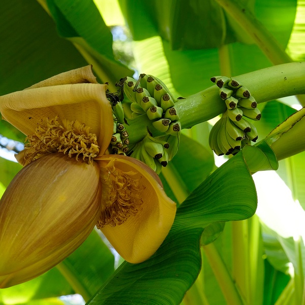 Deze bananenboom kan een tropische toevoeging zijn aan je tuin, balkon of terras en kan ook binnen gehouden worden.