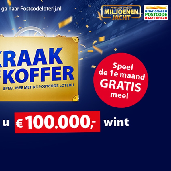 - Je speelt 1 maand gratis mee met de Postcode Loterij