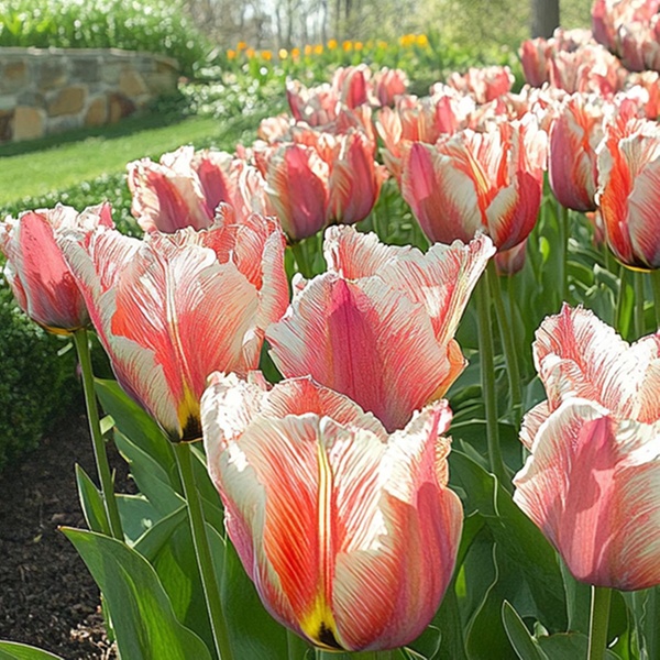 - Tulipa Abricot Parrot: zalm-oranje, opvallende vorm, perfect in groepen of potten
