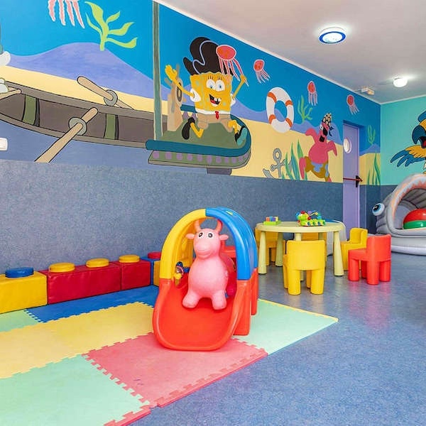 Als de kamer een stapelbed heeft, is het bovenste bed niet geschikt voor kinderen jonger dan 6 jaar.