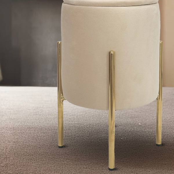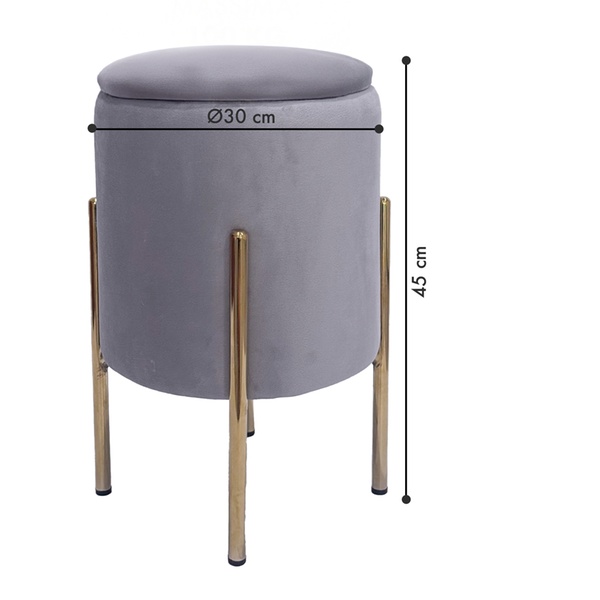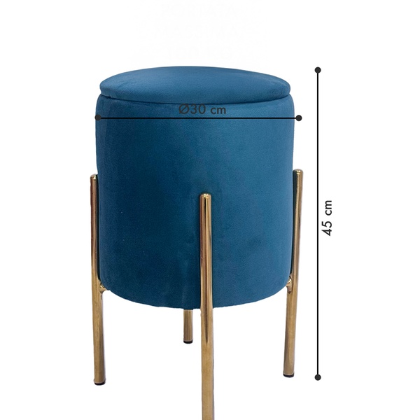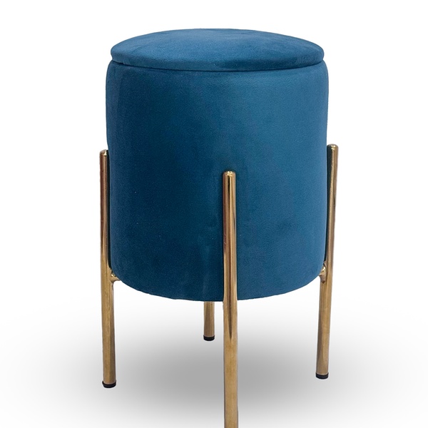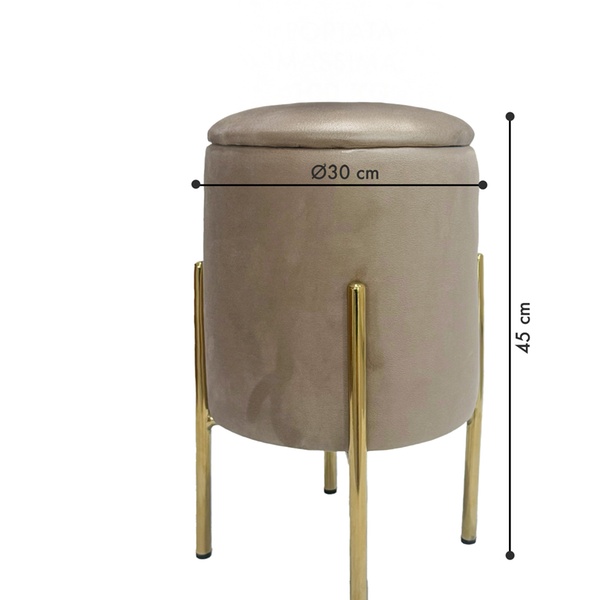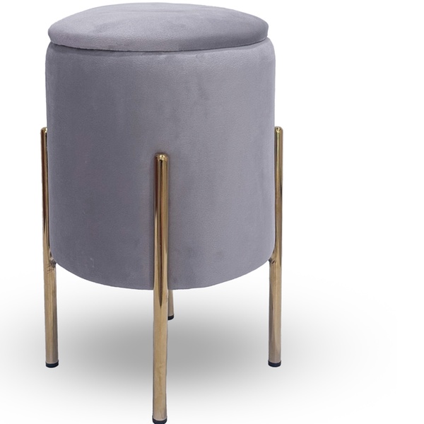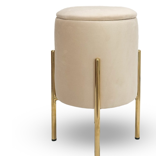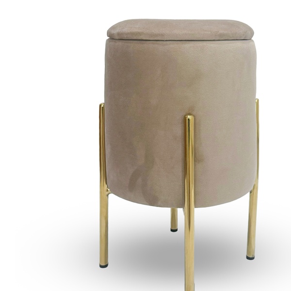 • Elegante opbergpoef met een zachte fluwelen bekleding en goudkleurige metalen poten.