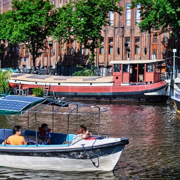 Volledig elektrisch en op zonne-energie, waardoor de boot stil vaart en gesprekken makkelijk blijven