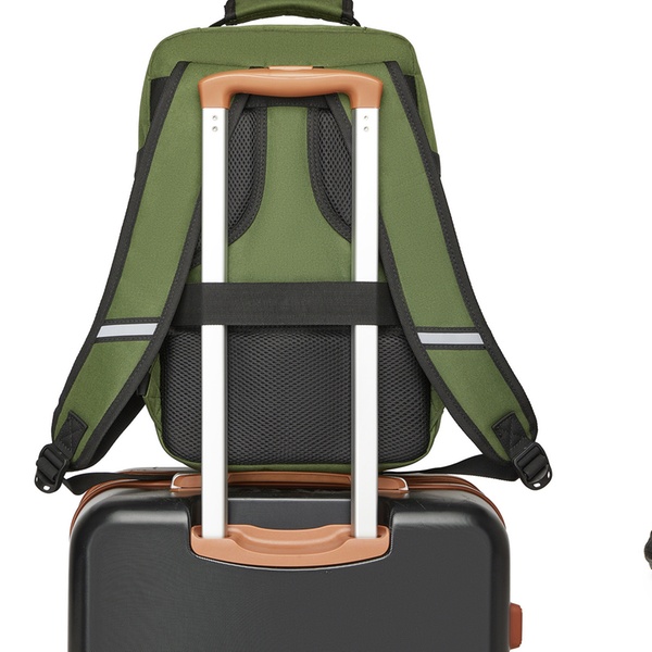 • Bagageriem aan de achterkant om de rugzak op een rolkoffer te bevestigen
