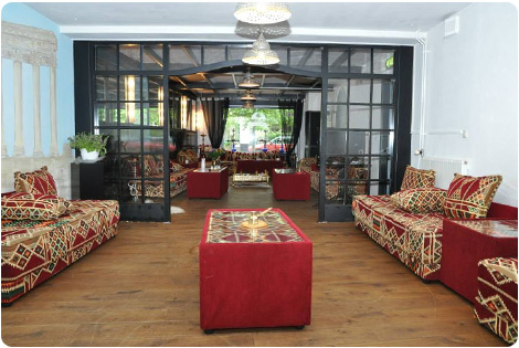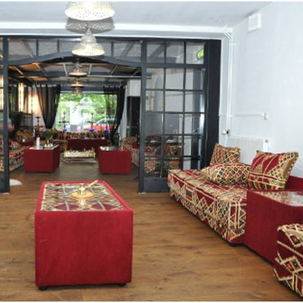 Felgekleurde zitbanken met mediterrane motieven nodigen je samen met de waterpijp uit om lekker te ontspannen, maar de lichtgrijze en donkergrijze tinten van het eetgedeelte verleiden tot geanimeerd tafelen in modern Libanese stijl. Bij Restaurant Ambassadors kan je alle kanten op.