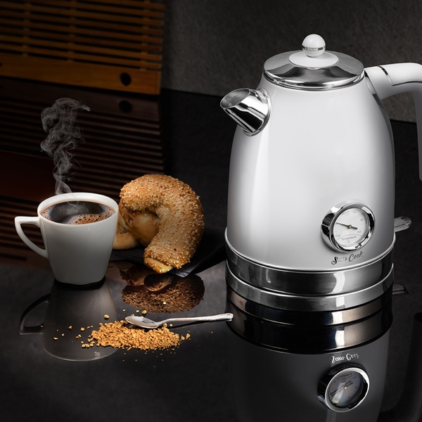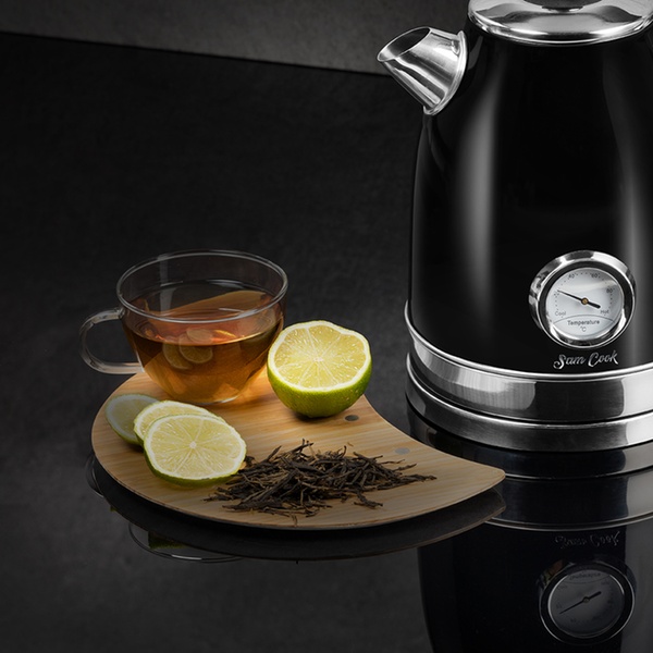 Deze retro design waterkoker is uitgerust met een technologie die het mogelijk maakt om water met een laag geluidsniveau te koken.