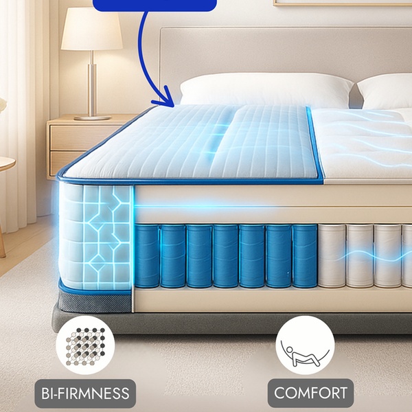 Matras met twee comfortzones (zacht & stevig) en hybride technologie van traagschuim en pocketveren