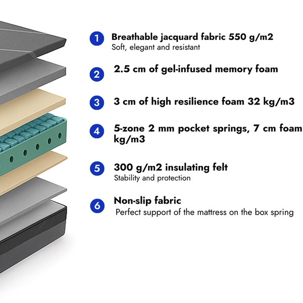 26 cm hybride matras met gel-traagschuim en pocketveren voor een balans tussen comfort en ondersteuning