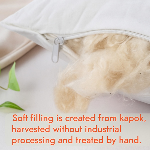 Natuurlijk slapen met lichtgewicht, ademende kapokvulling die je nek perfect ondersteunt – fris in de zomer, warm in de winter