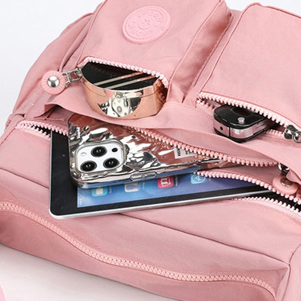 - Heeft verstelbare schouderbanden, zijzakken en een antidiefstalzak aan de achterkant