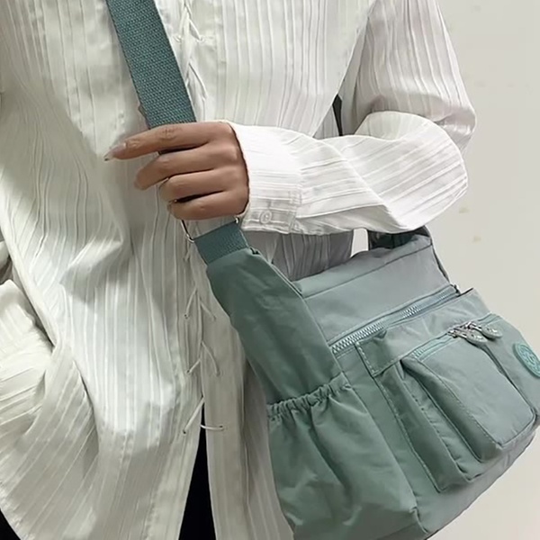 Deze waterdichte schoudertas met ruime compartimenten biedt organisatie en bescherming voor al je essentials, waar je ook heen gaat