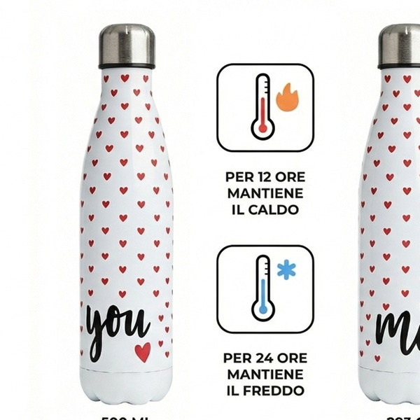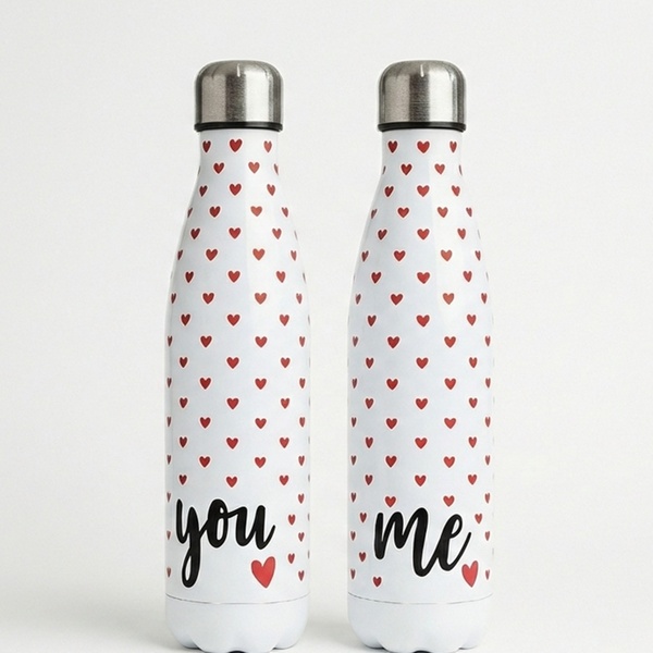 Verras je favoriete persoon met deze stijlvolle set van twee matching drinkflessen die jullie drankjes urenlang op temperatuur houden, of je nu samen op reis bent of naar de sportschool gaat