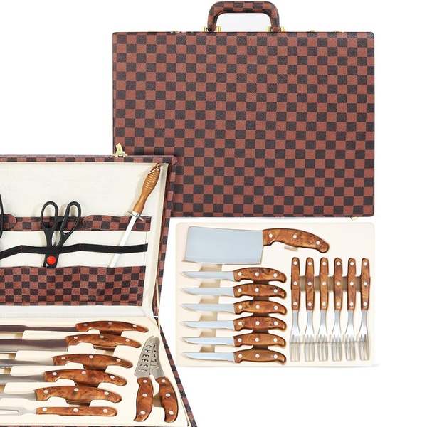 In dit etui zitten 9 of 25 verschillende messen zodat je voor ieder gerecht de juiste messen in huis hebt en gemakkelijk eten kan bereiden