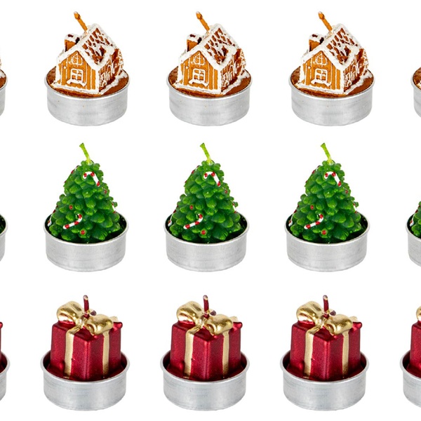 - Complete set van 18 theelichtjes (3 sets van 6 stuks) in feestelijke kerstvormen