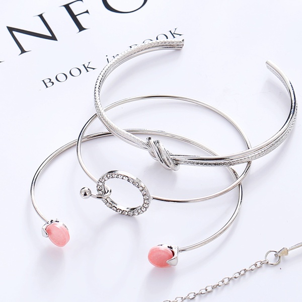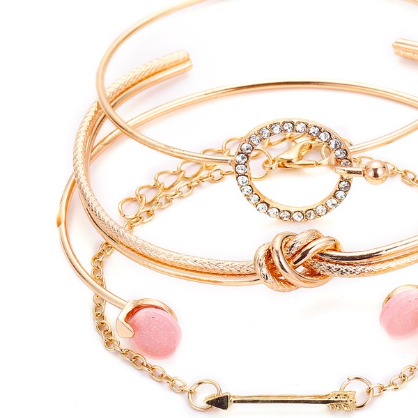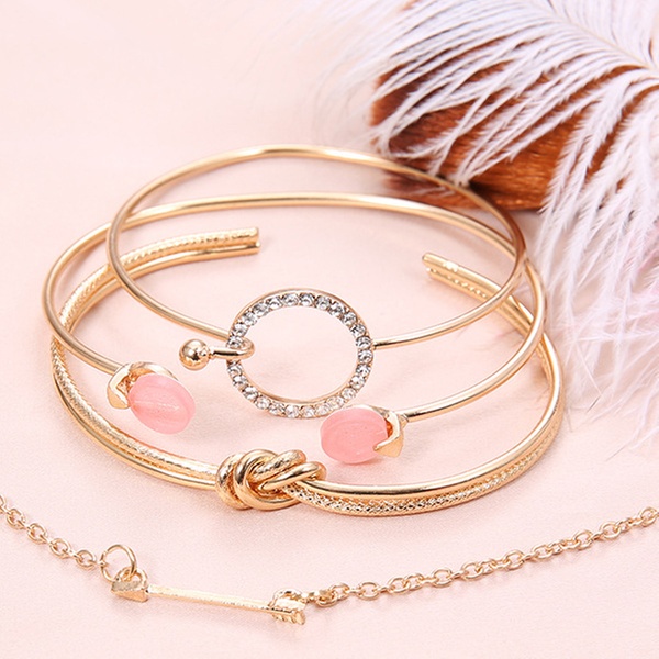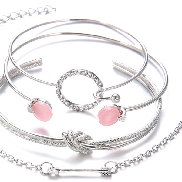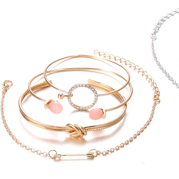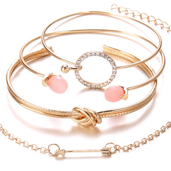 - Set van 4 armbanden met verfijnde ontwerpen: kristalcirkel, knoop en pijl