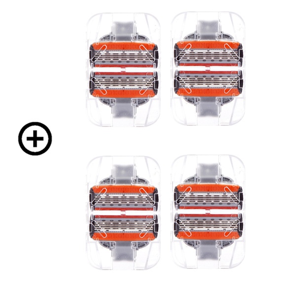 - € 14,99 voor een “The Executive”-starterset met houder en 4 mesjes + drie naleveringen met 4 mesjes (waarde € 40)