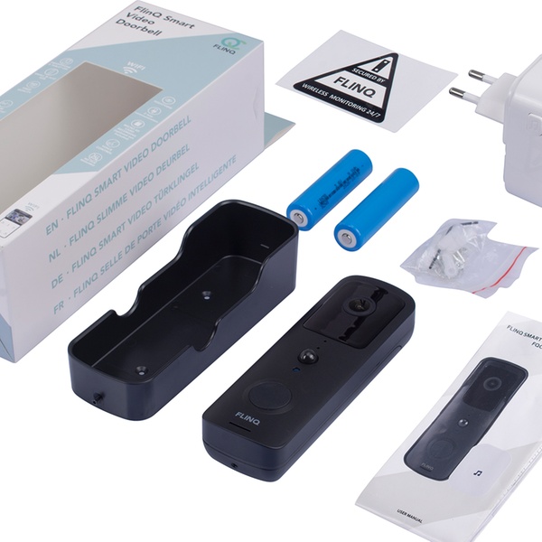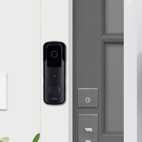 Met de ‘Smart’ FlinQ videodeurbel zie je altijd en overal wie er voor de deur staat dankzij de wifi-verbinding.