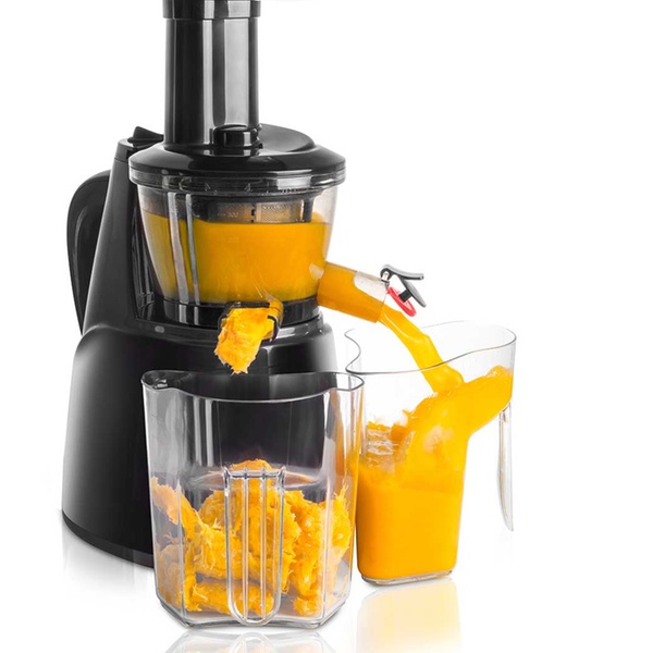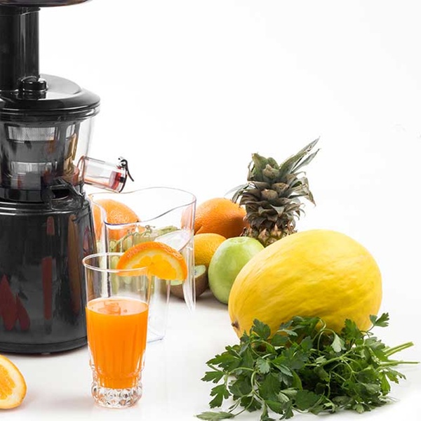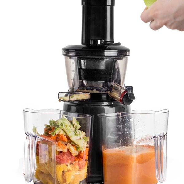Deze slow juicer is ontworpen om sapjes te maken van groenten en fruit met maximaal behoud van voedingsstoffen en vitamines.