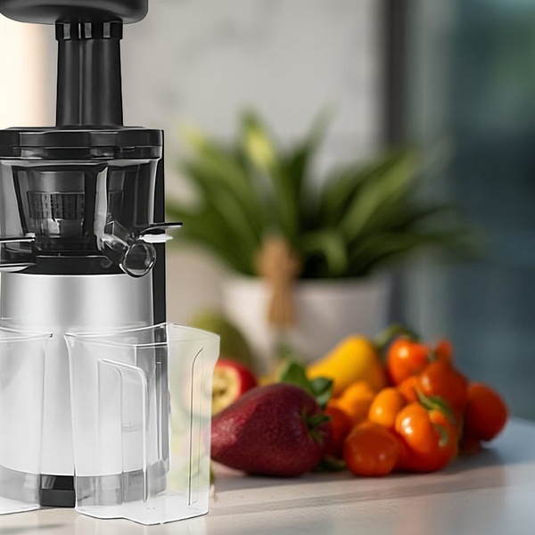 - Slowjuicer met 150W motor en lage snelheid (55 RPM) voor maximale sapextractie zonder oververhitting