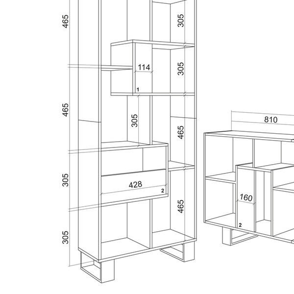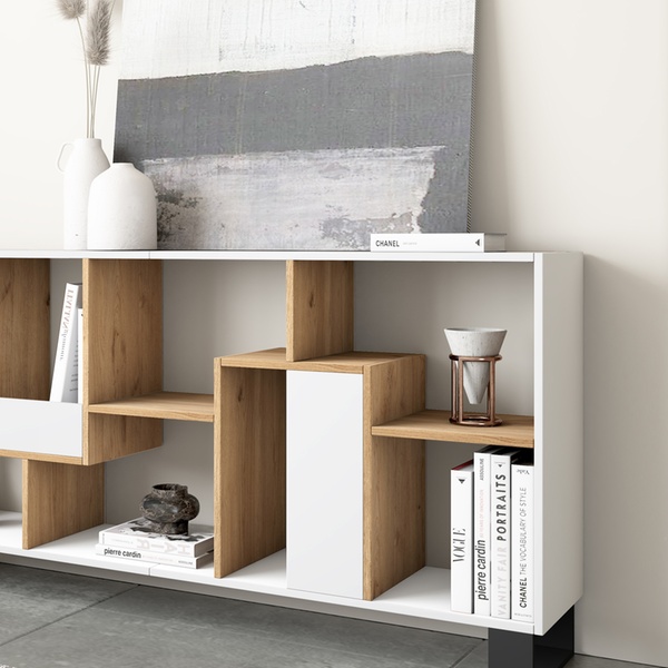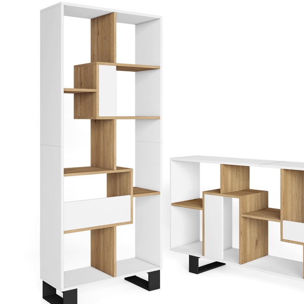 - Kast verkrijgbaar in Wit, zwart, wit met blank eiken of donker eiken en zwart met blank of donker eiken