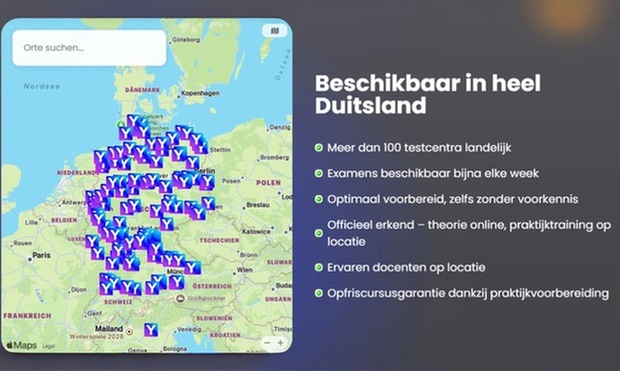 - Ruime beschikbaarheid in heel Duitsland met praktische trainings- en examenlocaties