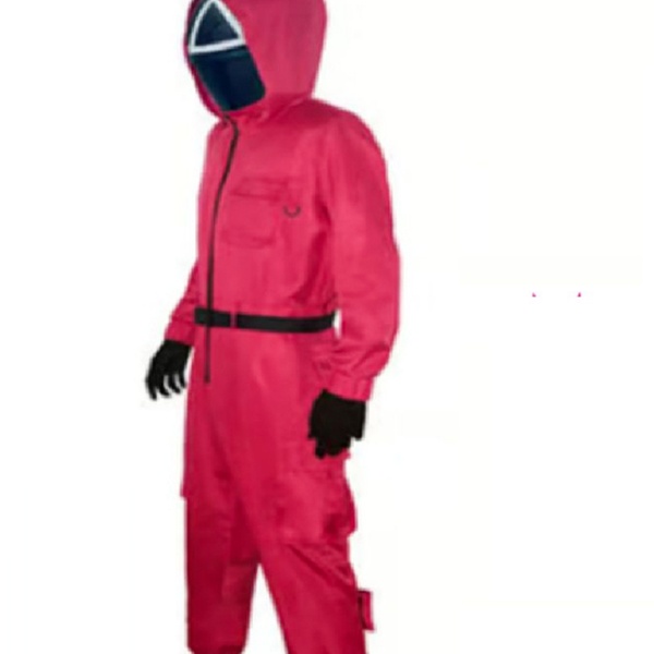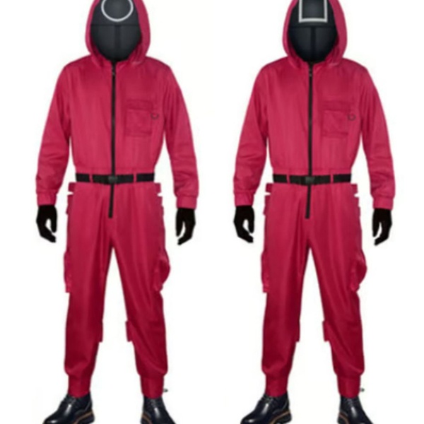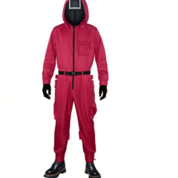 Word de iconische Squid Game bewaker met dit complete kostuum inclusief jumpsuit en keuze uit drie maskers