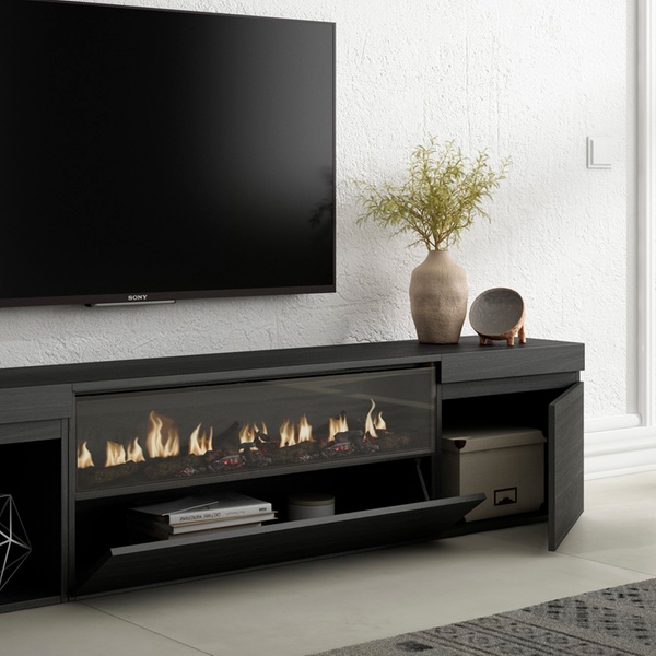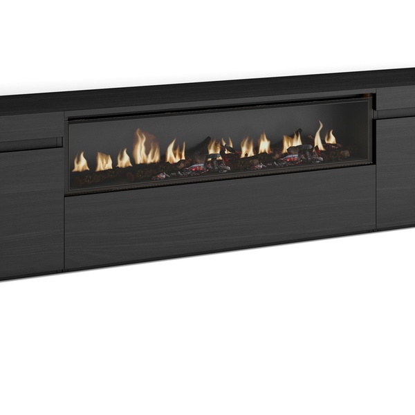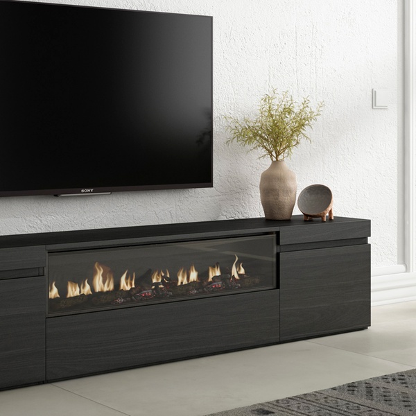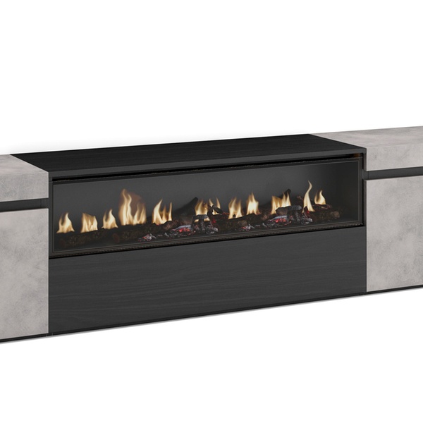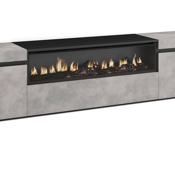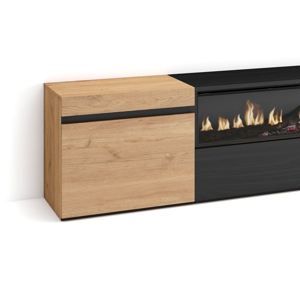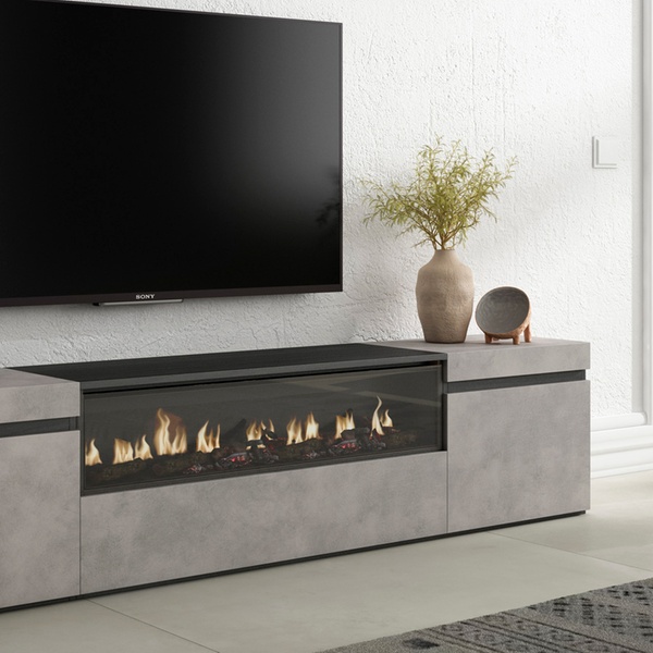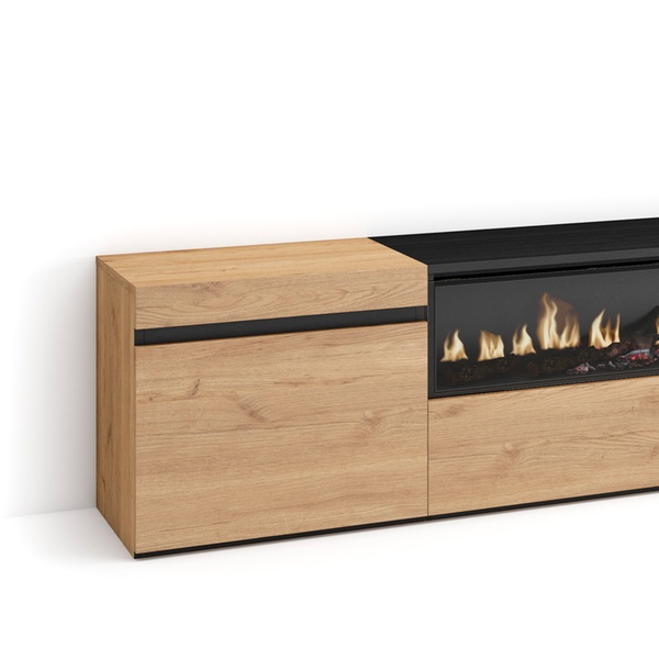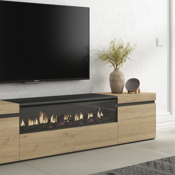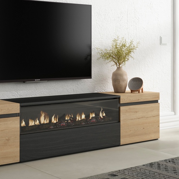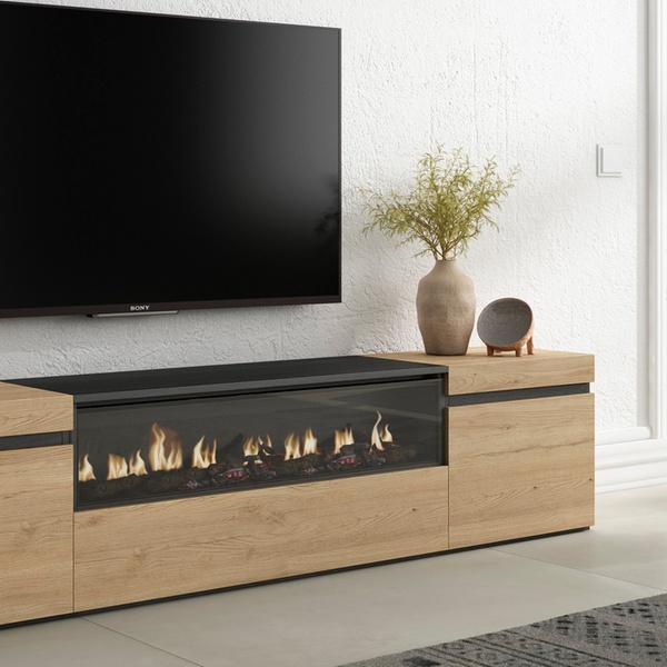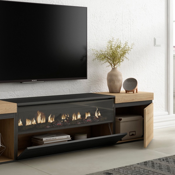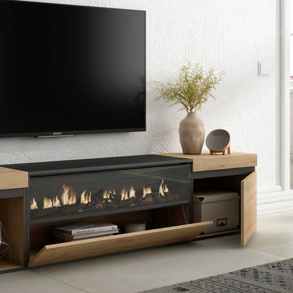 Geef je woonkamer extra sfeer met dit TV-meubel dat je optioneel combineert met een knusse led-elektrische openhaard