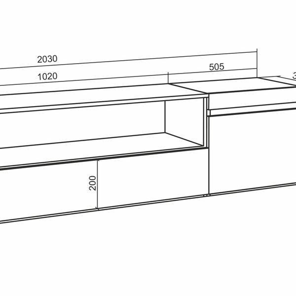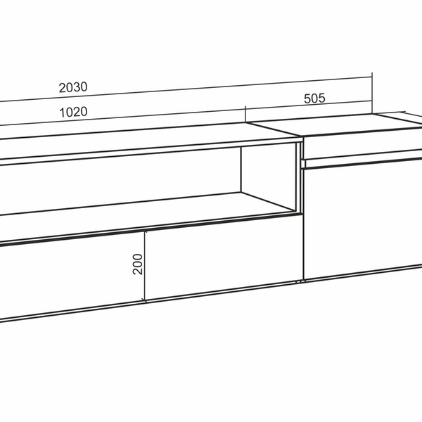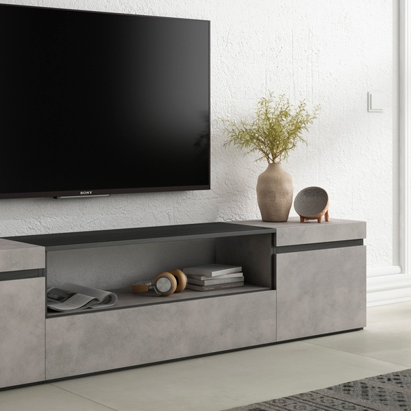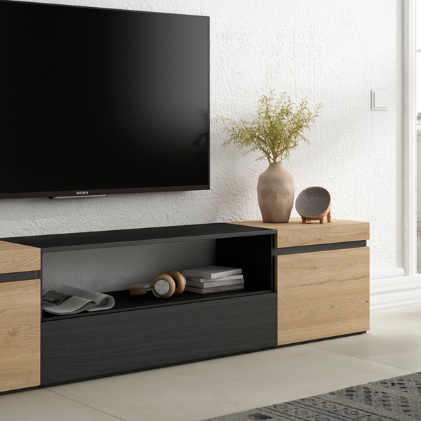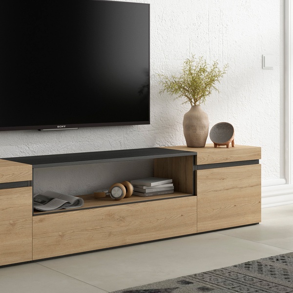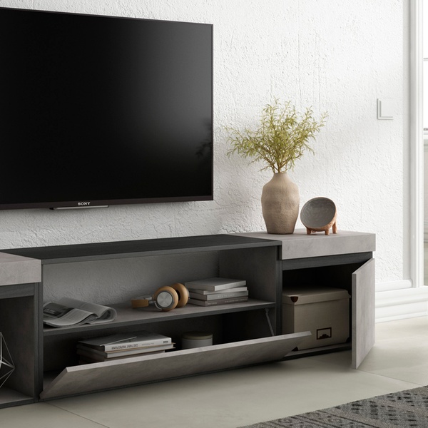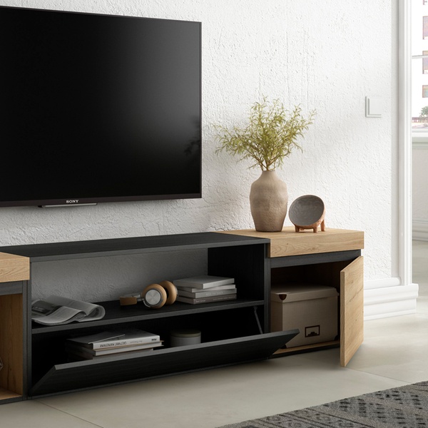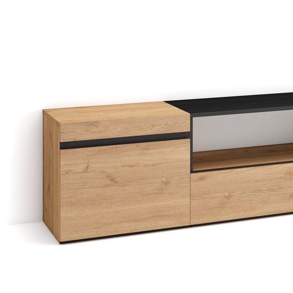 - TV-meubel van 200x45x35 cm met grote opbergruimte, bestaande uit twee modules: