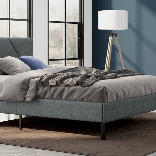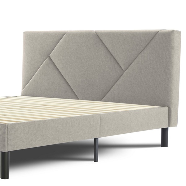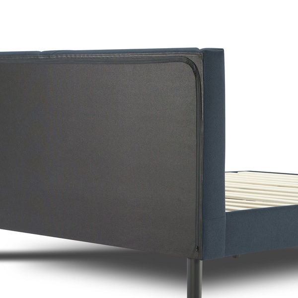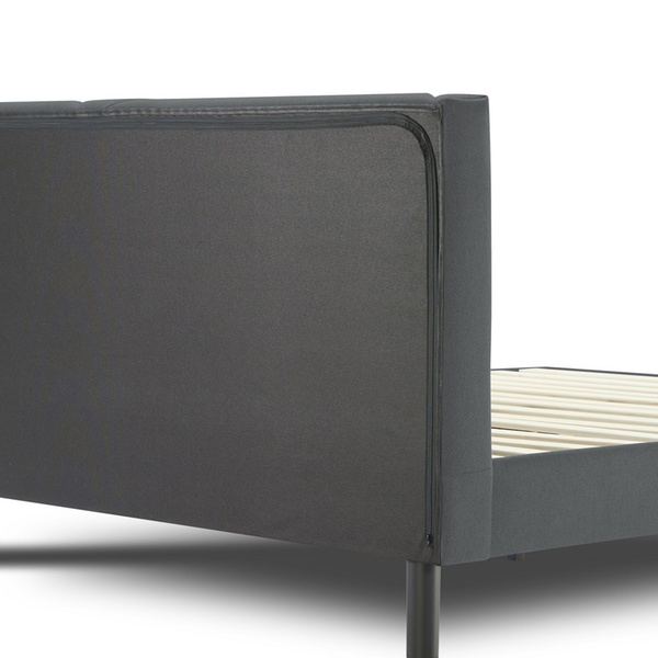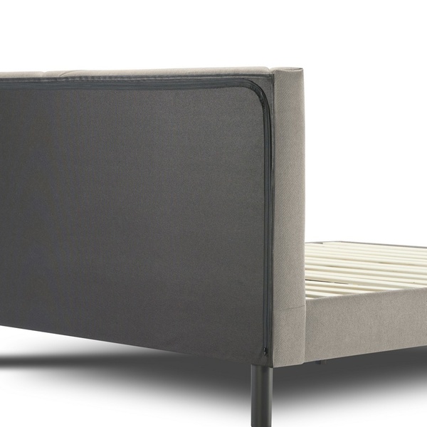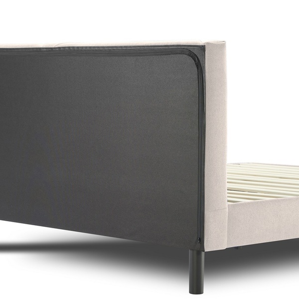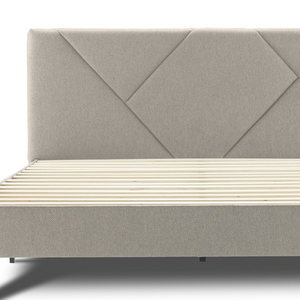 - Upholstered stoffen bed inclusief houten lattenbodem en opbergvak in het hoofdbord (afsluitbaar met rits)
