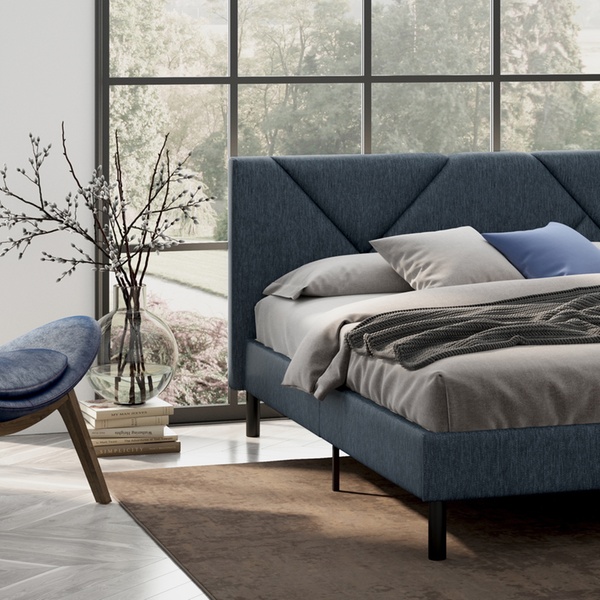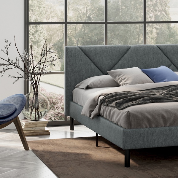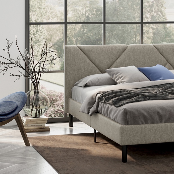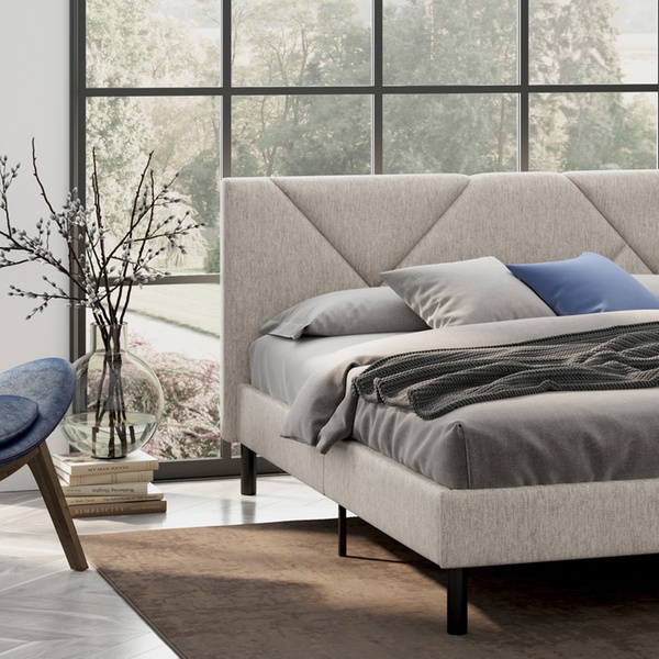 - Hoofdbord met geometrisch effect en zachte bekleding