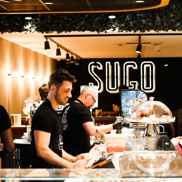 Bij SUGO zijn ze verliefd, verliefd op de Italiaanse Pizza al Taglio. Een luchtige slice cultuur waar de eigenaren van het restaurant zich mee onderscheiden in Nederland. Op het extra luchtige deeg waar de pizza's mee worden gebakken kan je eindeloos variëren en combineren met ingrediënten. En zo hoef je er eigenlijk nooit op uitgekeken te raken. De Italianen zijn er daarom zelf ook nog steeds erg dol op, je ziet daar op bijna elke straathoek wel een tentje waar je zo'n luchtige vierkante pizza-slice kan halen voor on the go of voor thuis op de bank. Dit afhaalconcept hebben de eigenaren van SUGO overigens iets veranderd door er een complete restaurantervaring van te maken. Een ervaring die je kan beleven in Amsterdam, Eindhoven, Utrecht en Rotterdam.