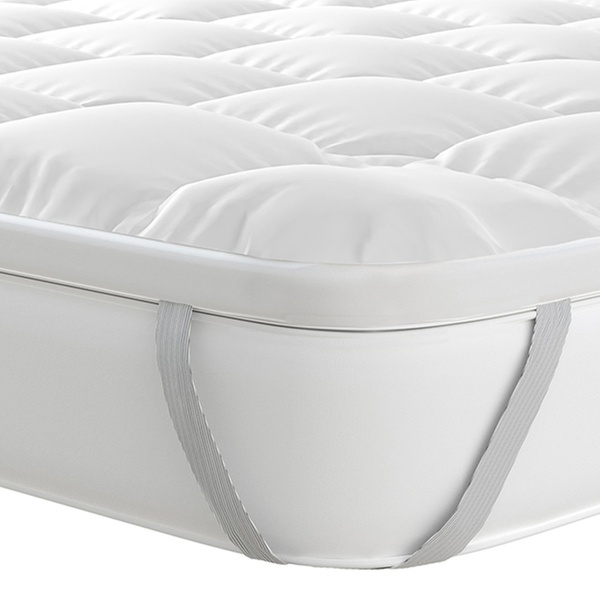 - Gevoerde en doorgestikte topper met 4 stevige elastieken om goed op het matras te bevestigen