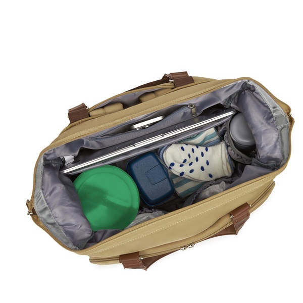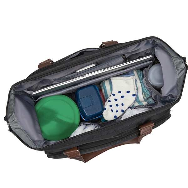 Met deze grote tas ben je voorbereid op alles wat er zo ongeveer op je pad komt wanneer je net vader of moeder bent geworden