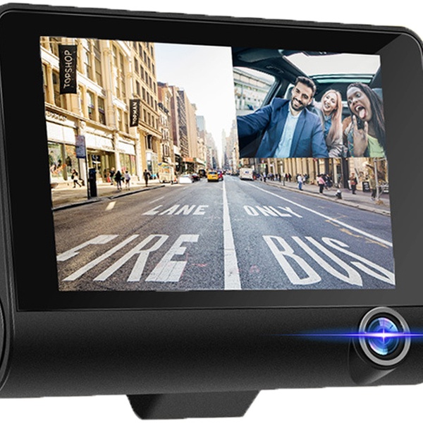• Drievoudige lens voor gelijktijdige opname van voor, achter en interieur