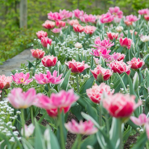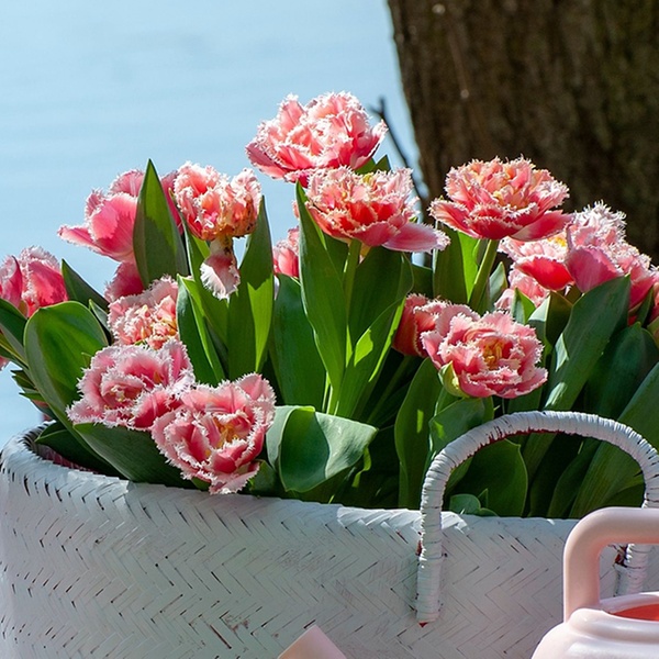 - Type: dubbele tulp met witte en roze franjeranden