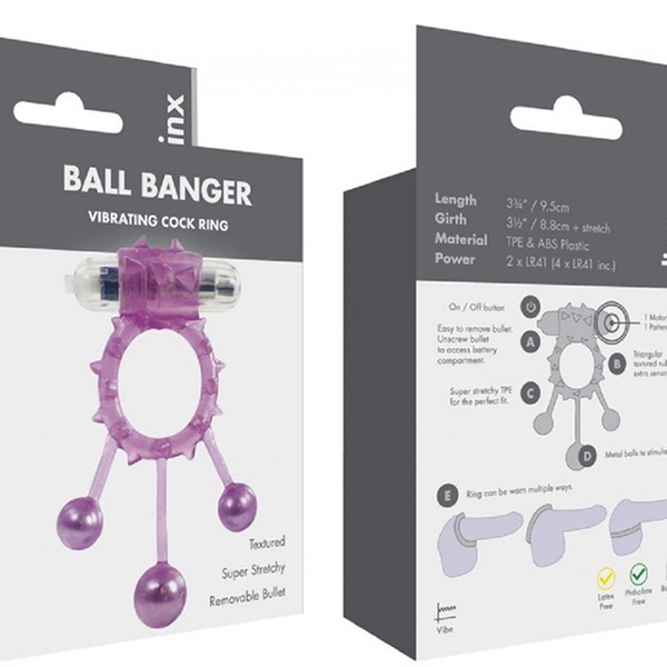 ** he Ball Banger:** * Met textuur * Zeer elastisch * Afneembare bal * Latex * Ftalaat-vrij * Inclusief batterijen