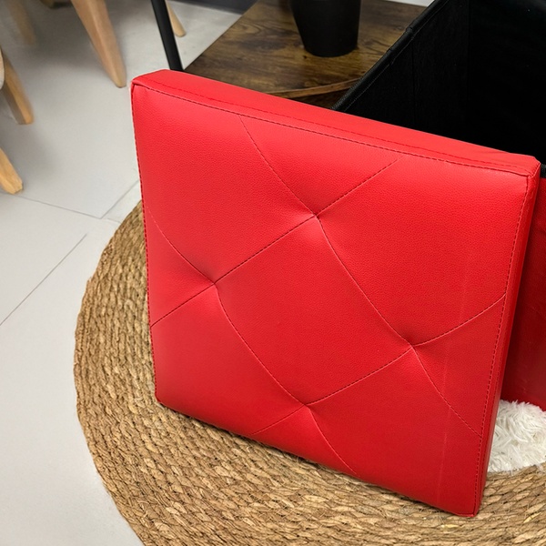 - Vierkante poef met kunstleren bekleding, zowel praktisch als decoratief